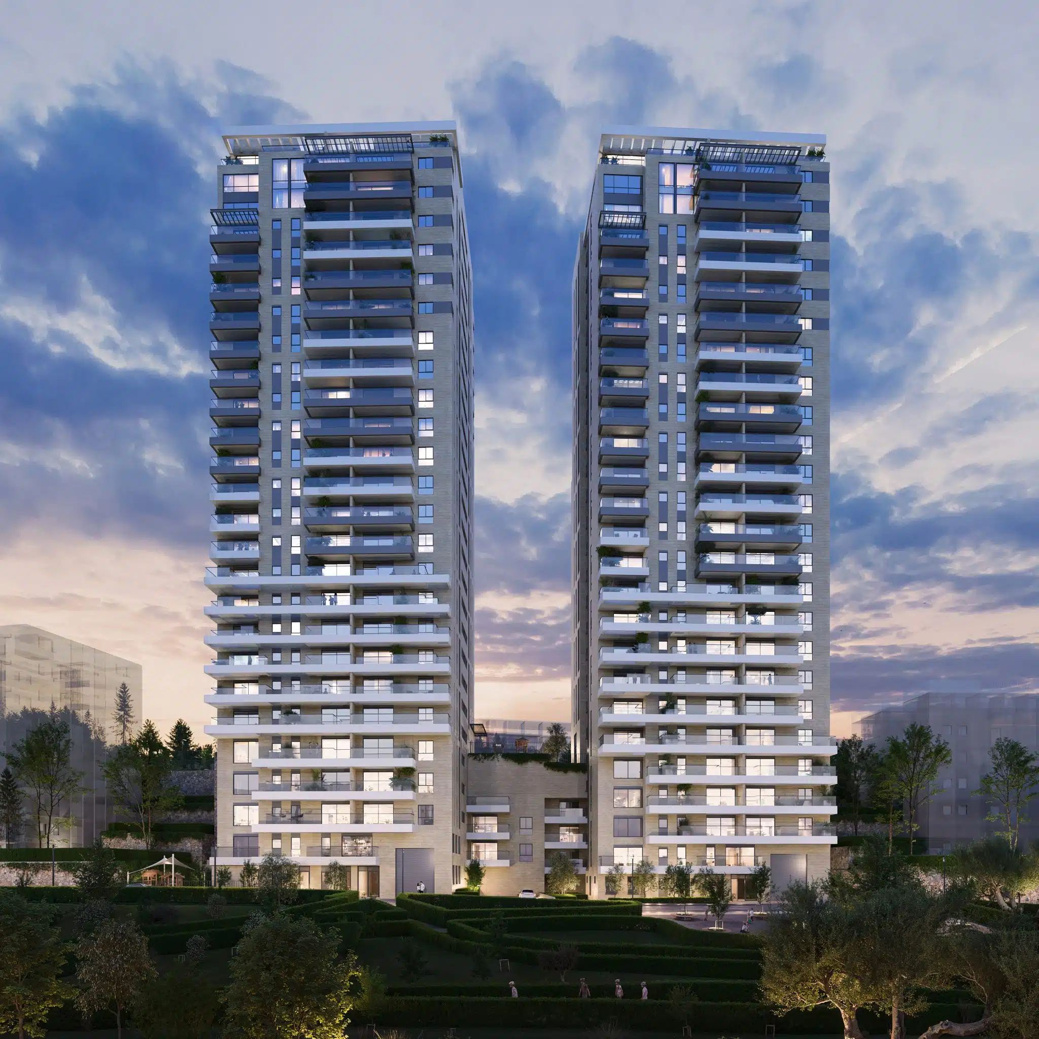The innovative Geoni Towers by Guy & Doron Levy located in the heart of green and well-kept spaces in the renewed Kiryat Hayovel neighborhood. The project offers peaceful and quiet living without sacrificing proximity to main transportation routes and advanced transportation, proximity to a commercial center offering cafes, restaurants, grocery stores, and more.