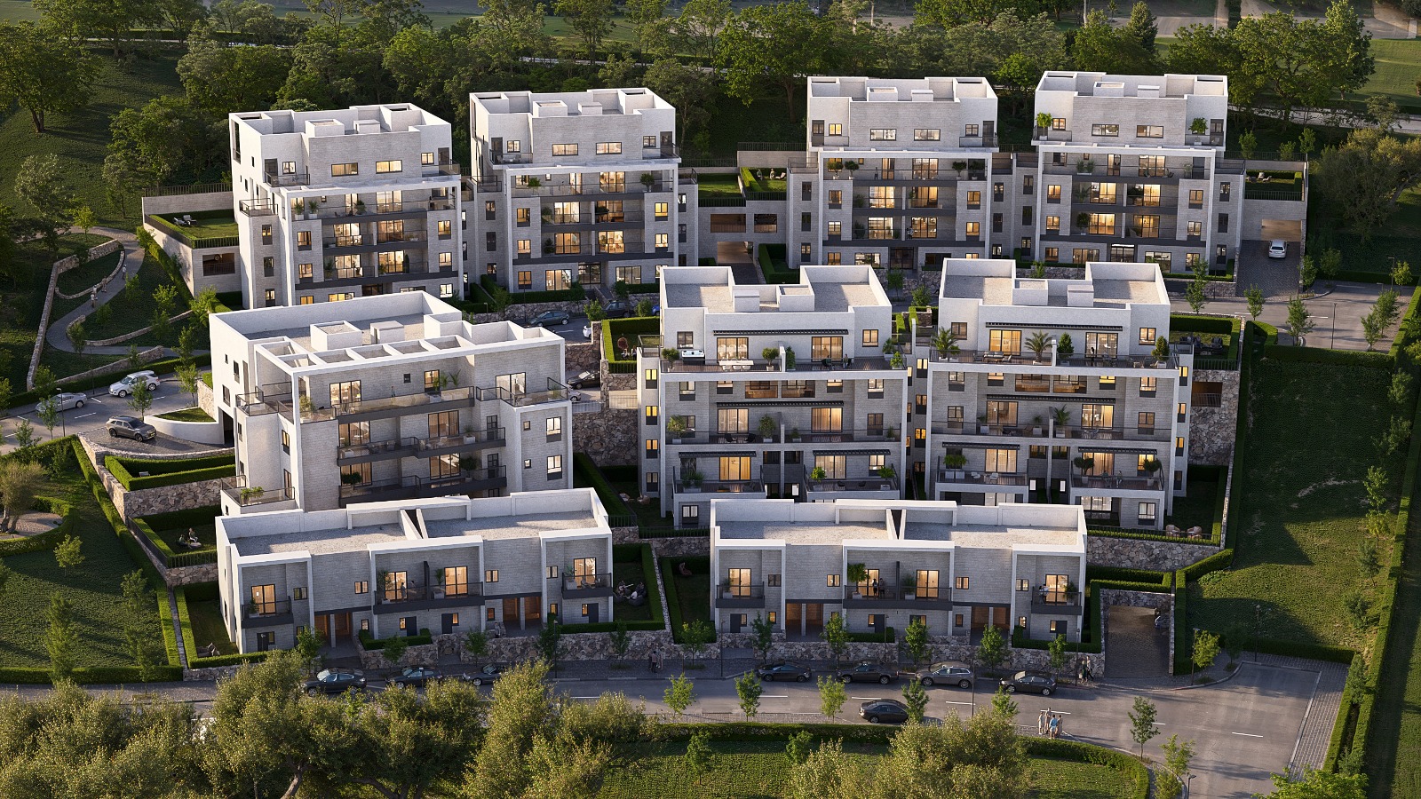 הפרויקט תוכנן בשני מתחמים ובהם 17 בניינים המעוצבים בהשראת בתים צמודי קרקע. המבנים מחופים בשילוב אבן ירושלמית.